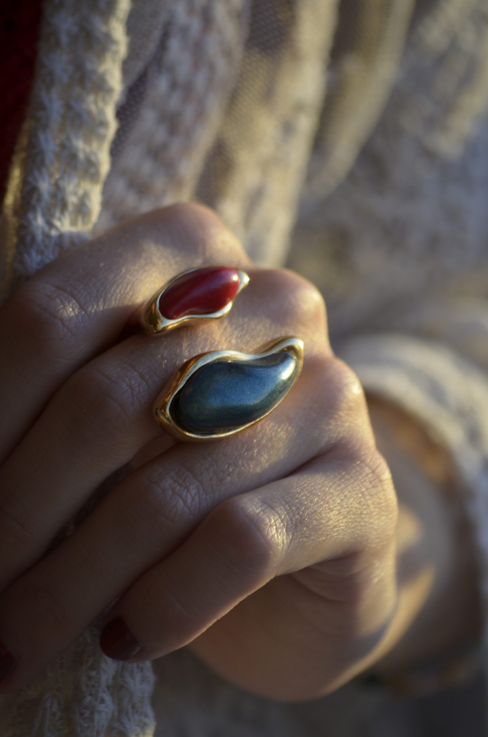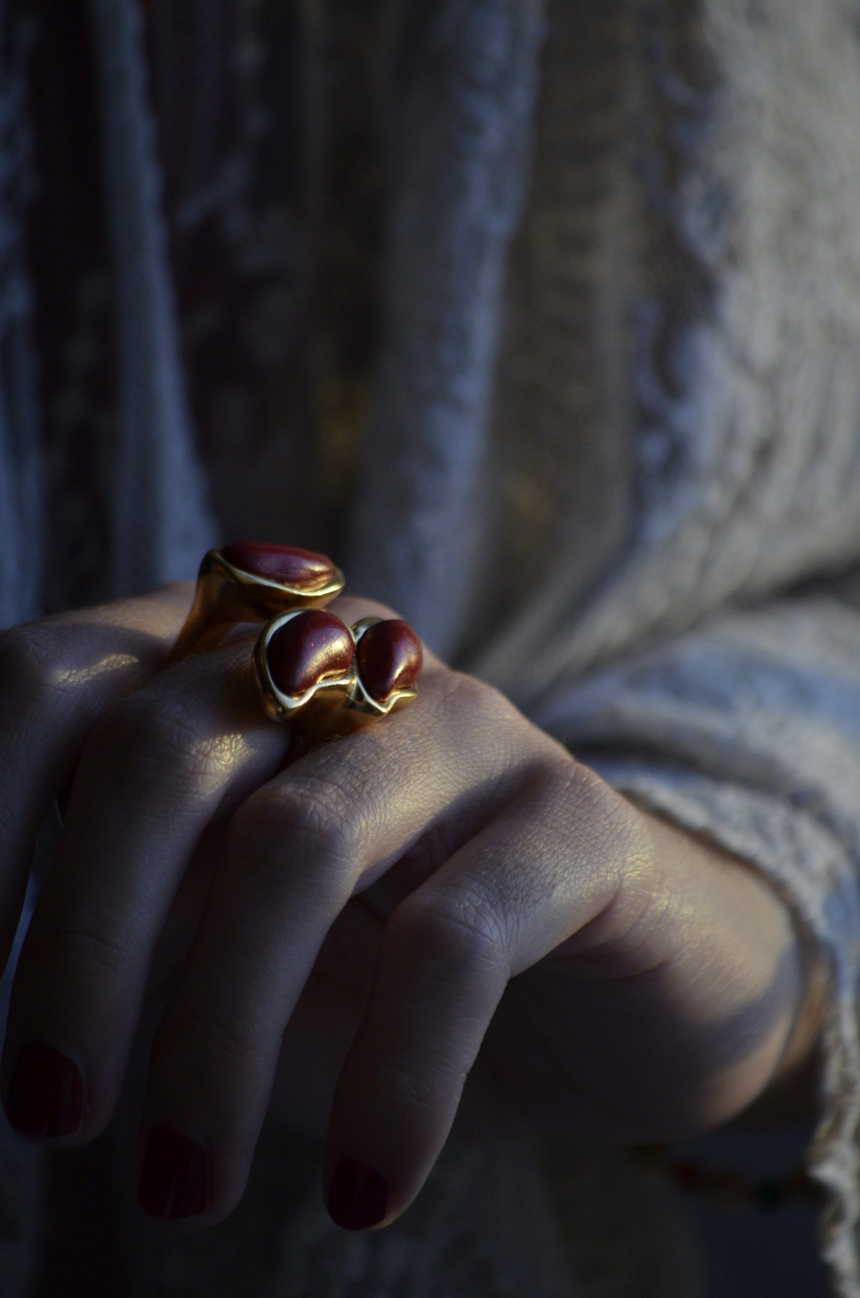 ANILLO TRÍPOLI BURDEOS, NARANJA Y HIELO