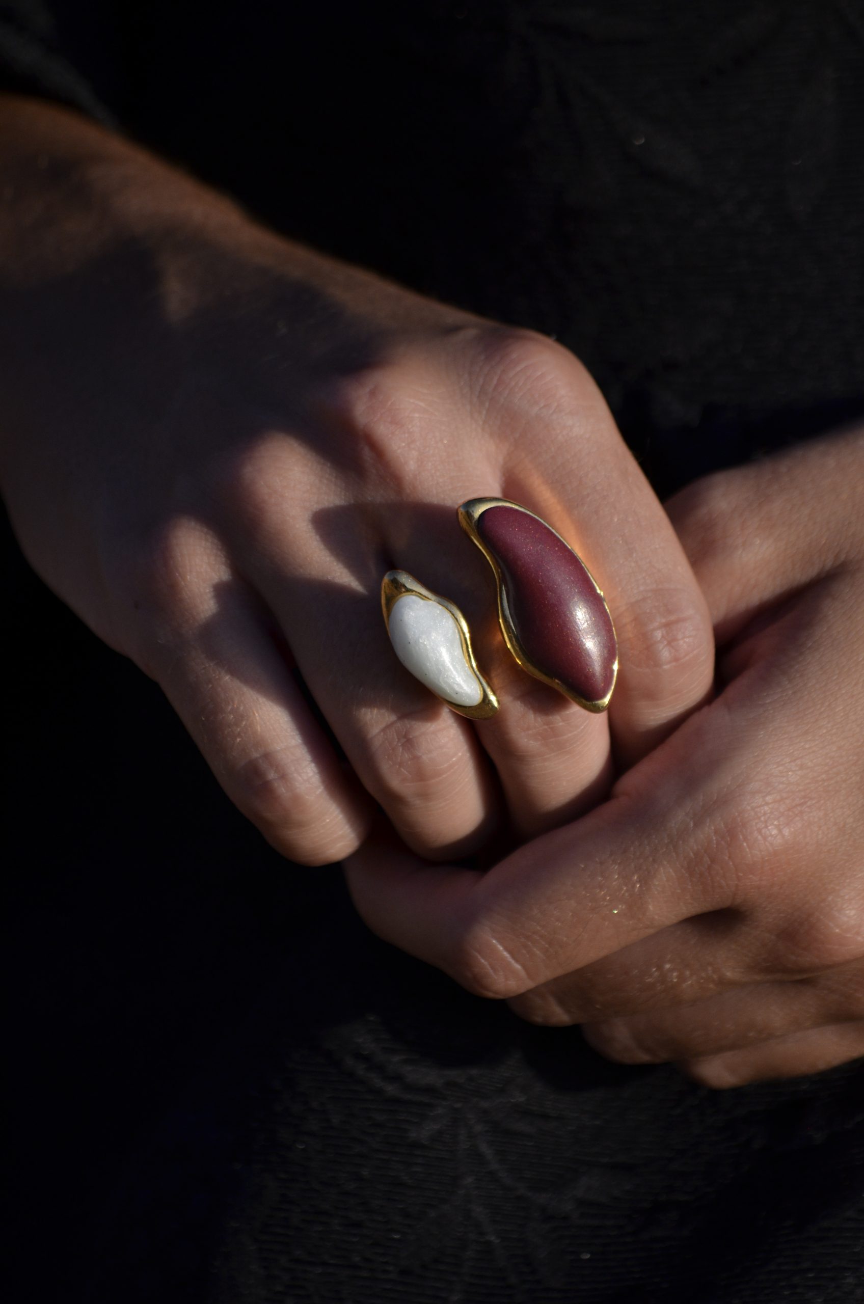 Anillo modelado a mano en arcilla polimérica. La talla es ajustable.
