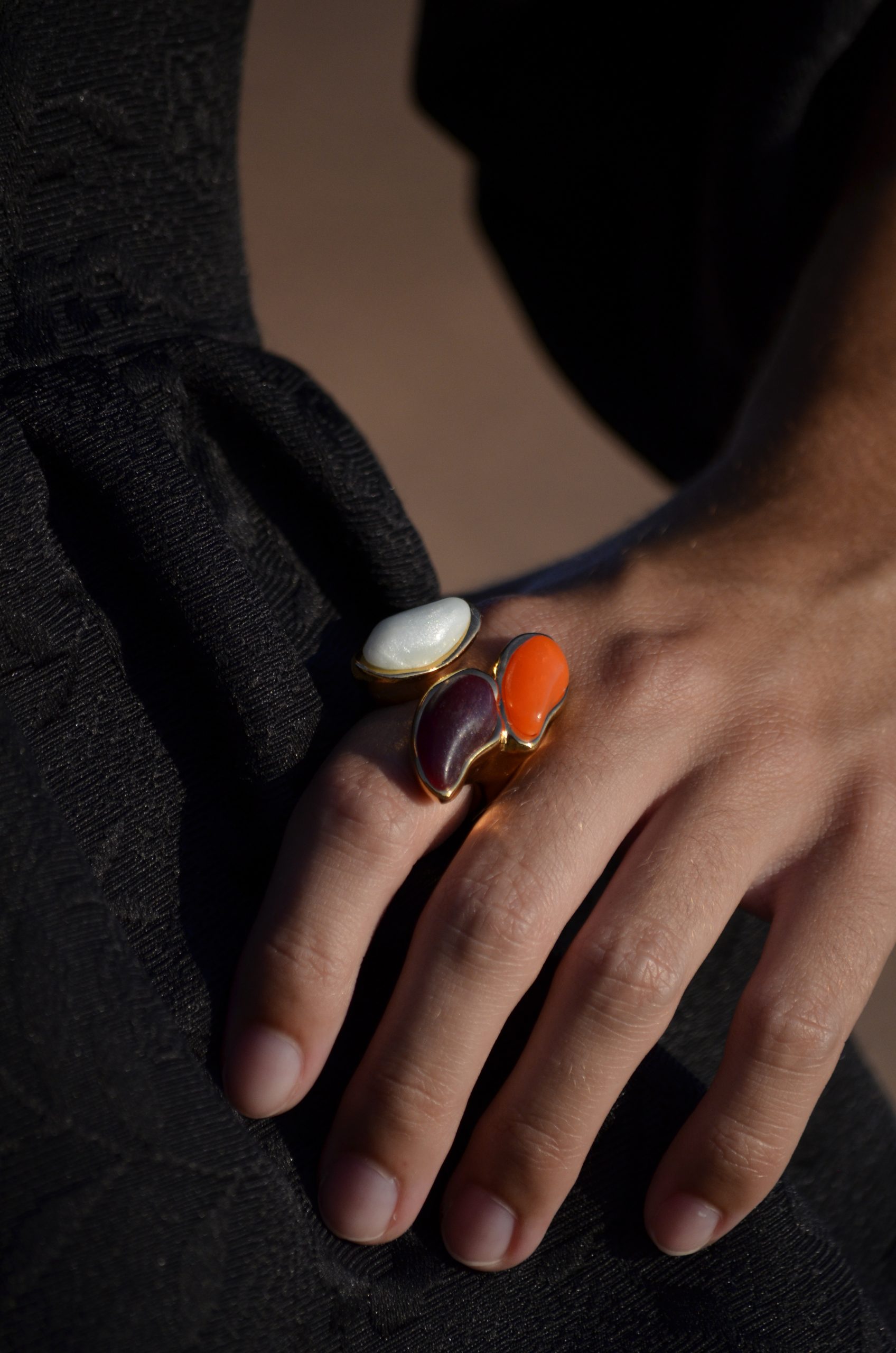 ANILLO TRÍPOLI BURDEOS, NARANJA Y HIELO