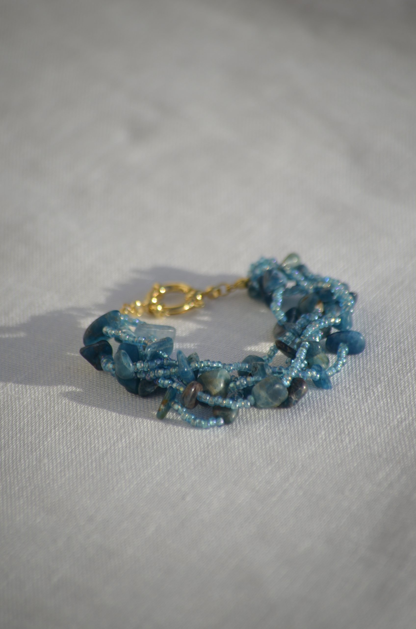 Brazalete de ágata negro y rocalla. Cierre resistente de acero inoxidable.