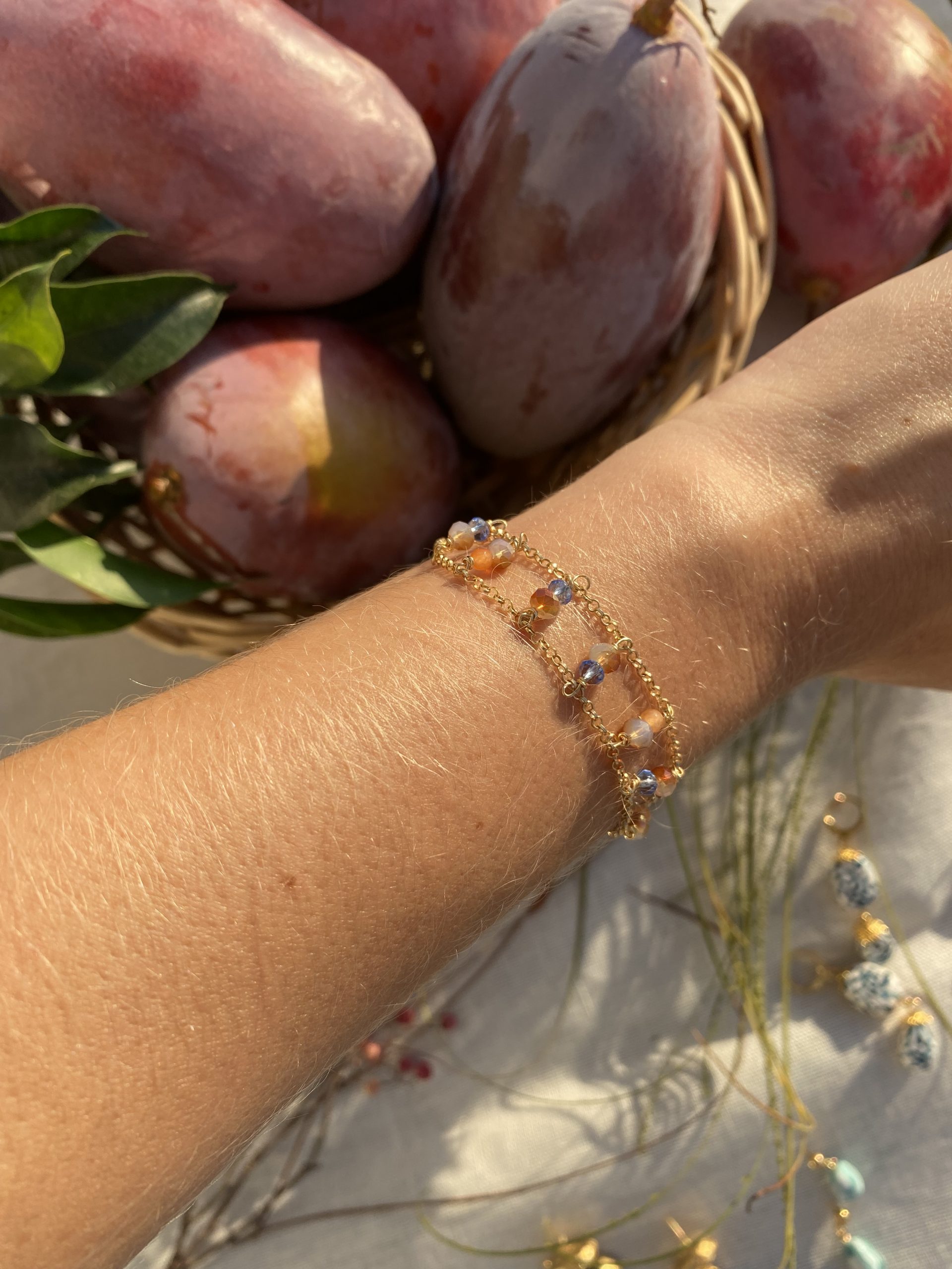 Instrucciones de cuidado: para proteger el baño dorado de tu joya y que permanezca bonita por más tiempo, guárdala siempre dentro de su bolsita, en un lugar limpio y seco alejado de cremas, aceites, perfumes… Evitar en la medida de lo posible el contacto con el agua y tratar con mucho mimo: sobre todo las partes de arcilla polimérica podrían romperse si se caen o se doblan.