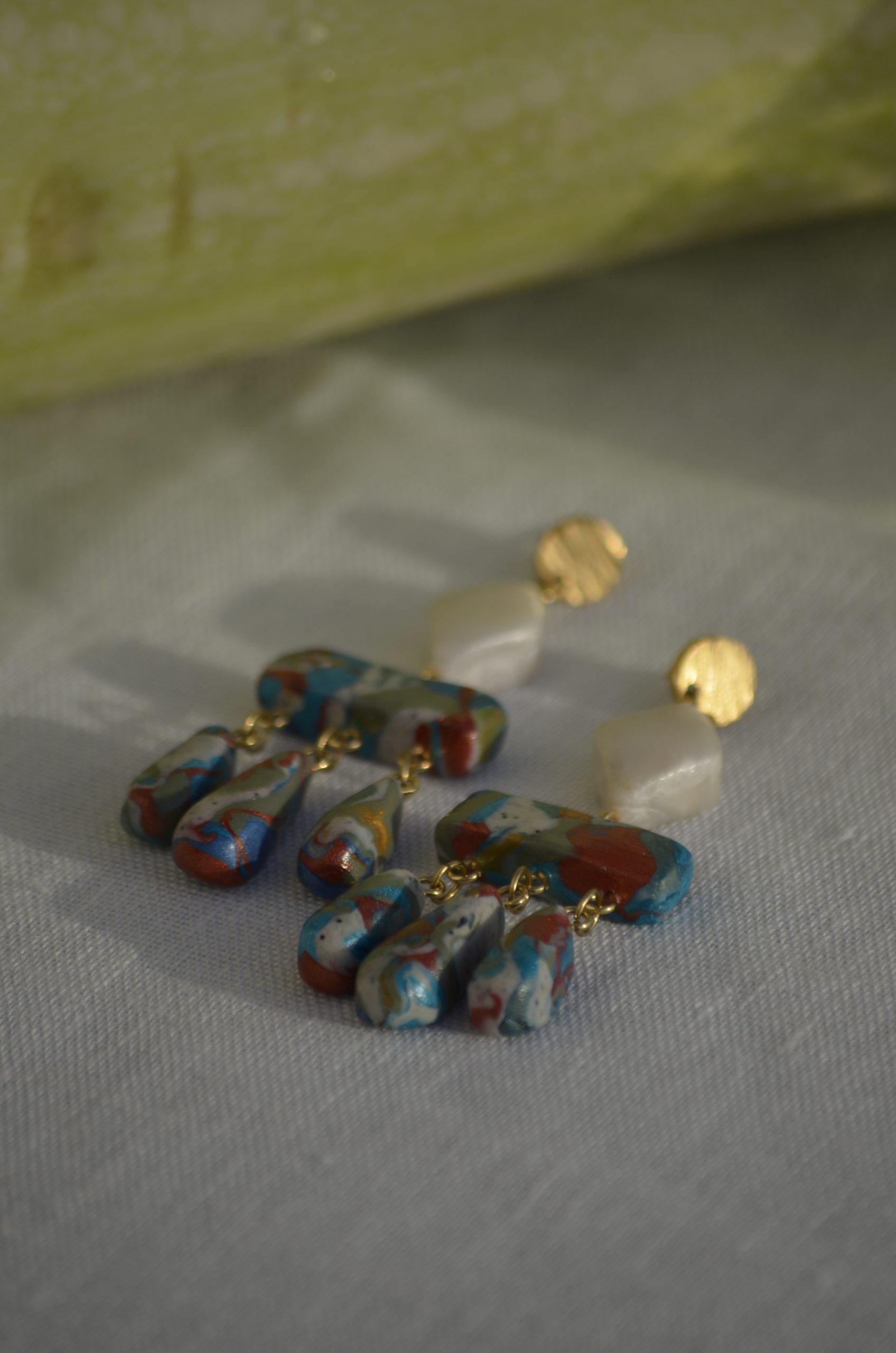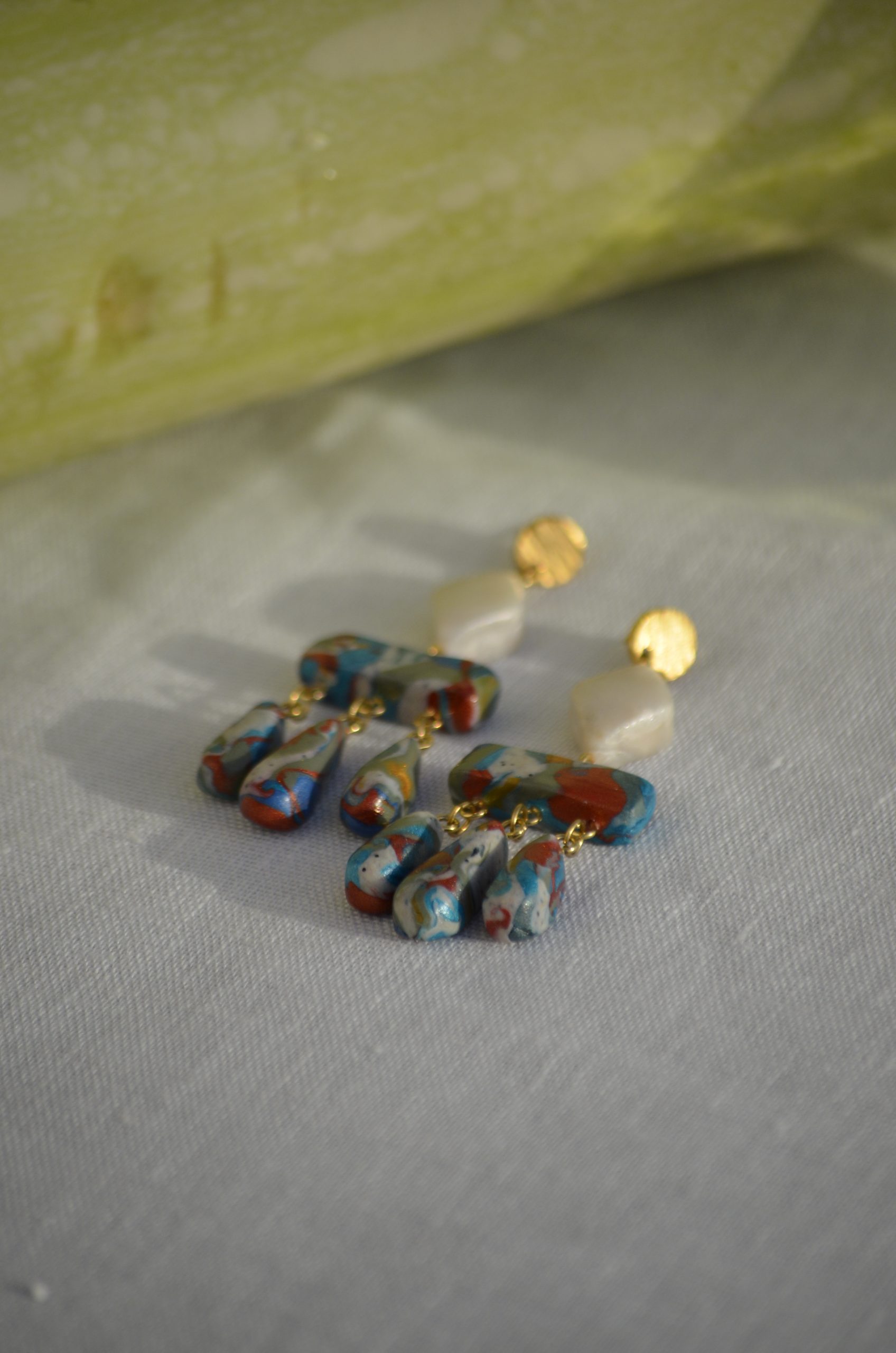 Instrucciones de cuidado: para proteger el baño dorado de tu joya y que permanezca bonita por más tiempo, guárdala siempre dentro de su bolsita, en un lugar limpio y seco alejado de cremas, aceites, perfumes… Evitar en la medida de lo posible el contacto con el agua y tratar con mucho mimo: sobre todo las partes de arcilla polimérica podrían romperse si se caen o se doblan.