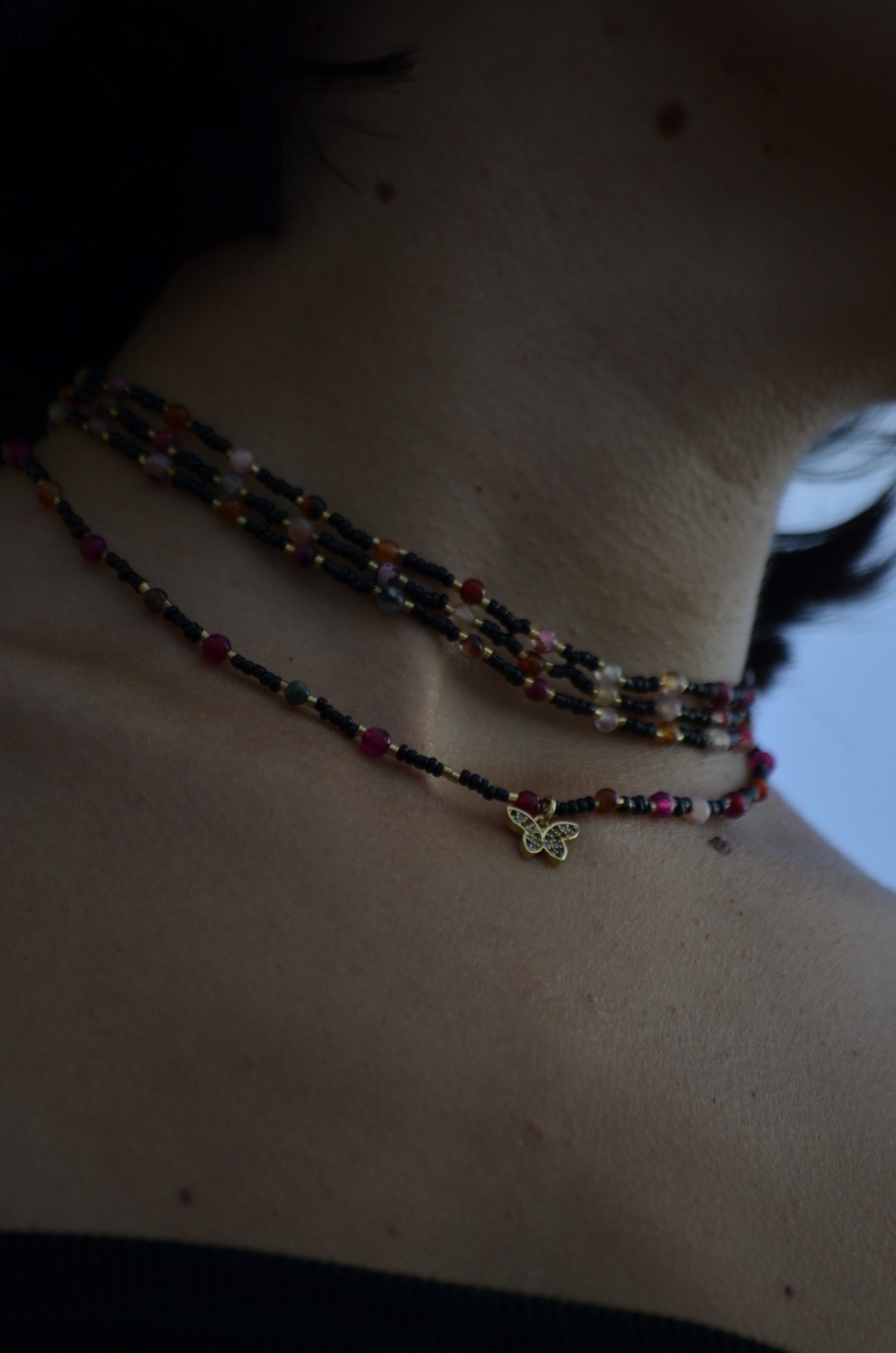 Choker de ágata y rocalla con cierre dorado de acero inoxidable y plata bañada en oro de 18K.