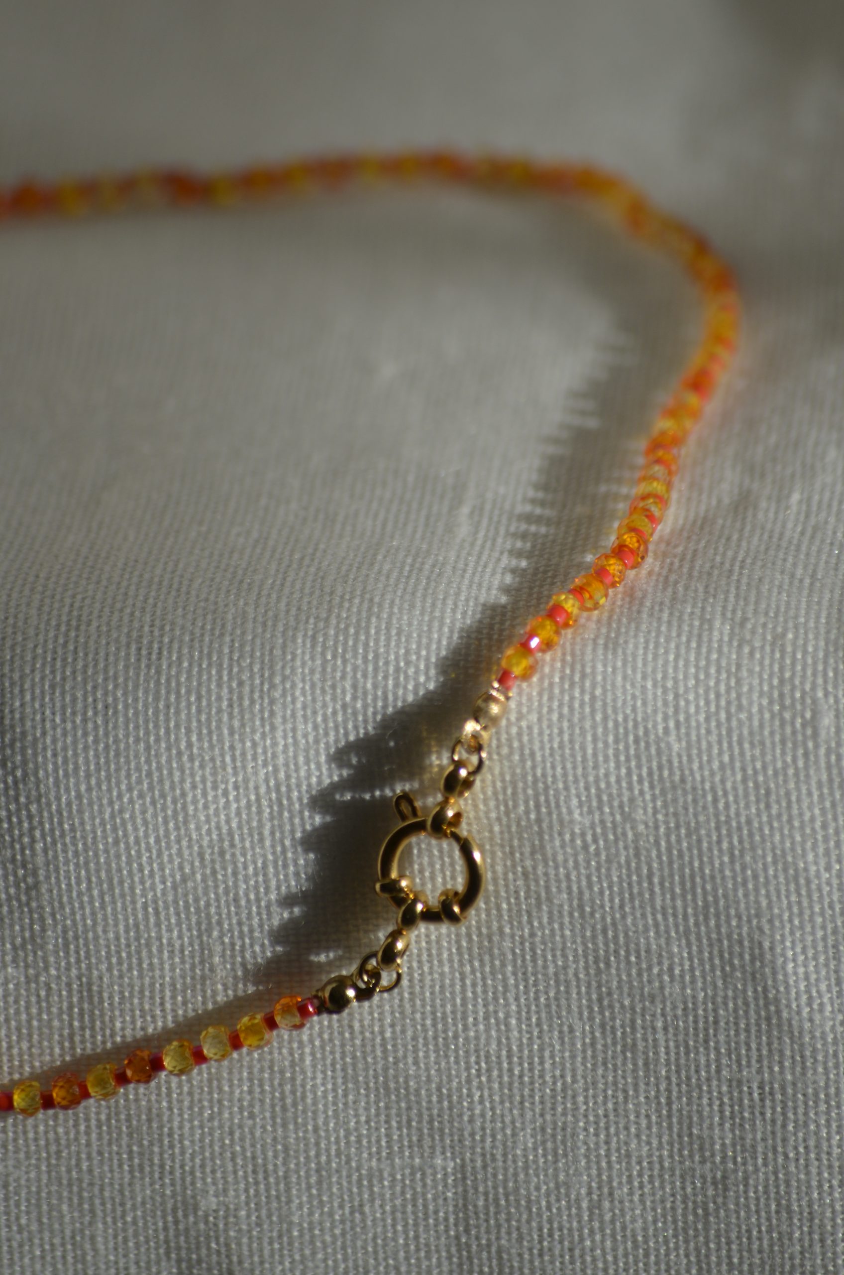 Gargantilla de ágata. Cierre resistente de acero inoxidable y plata bañada en oro de 18K.