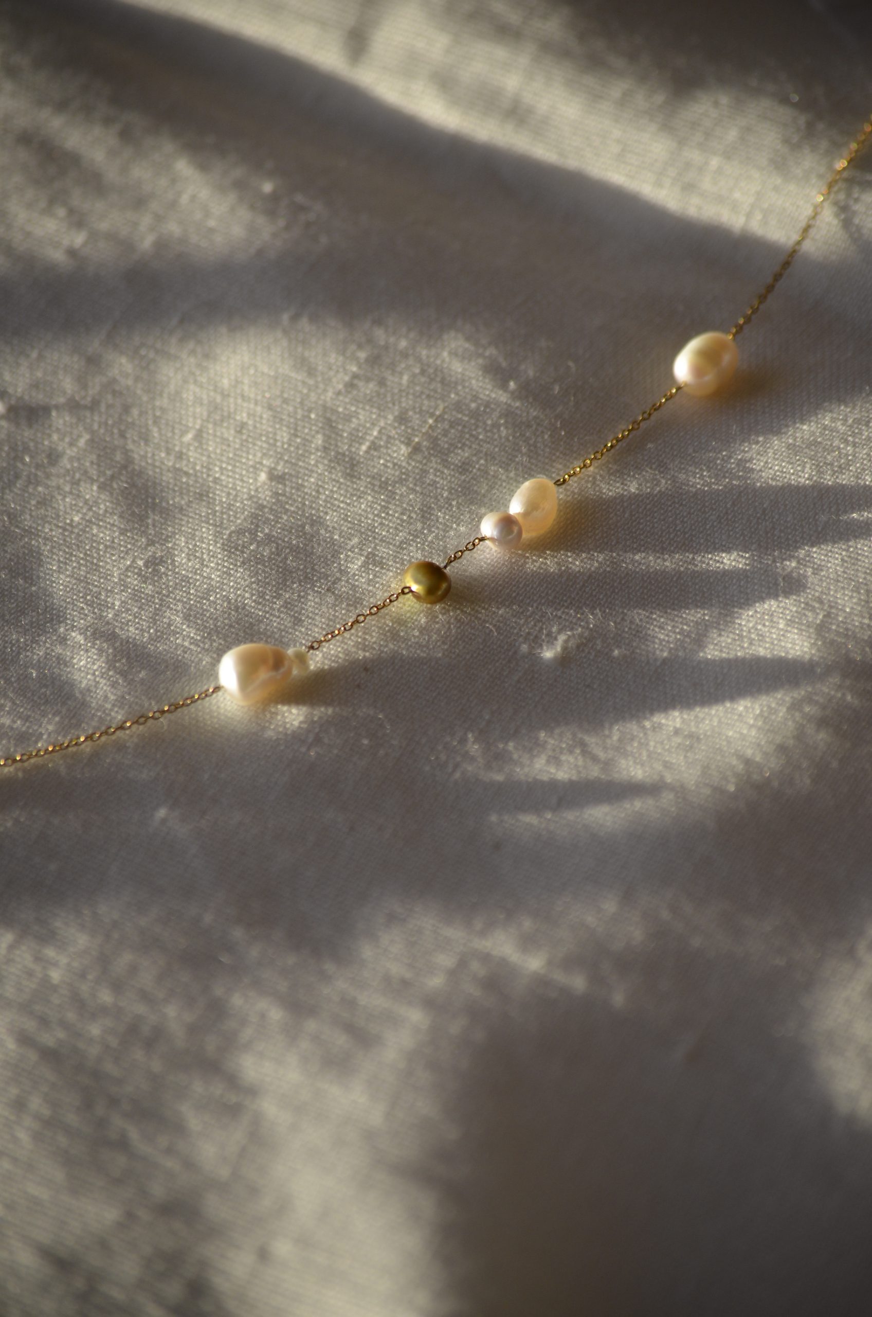 Gargantilla con perla de agua dulce y partes doradas de acero inoxidable y plata bañada en oro de 18K.