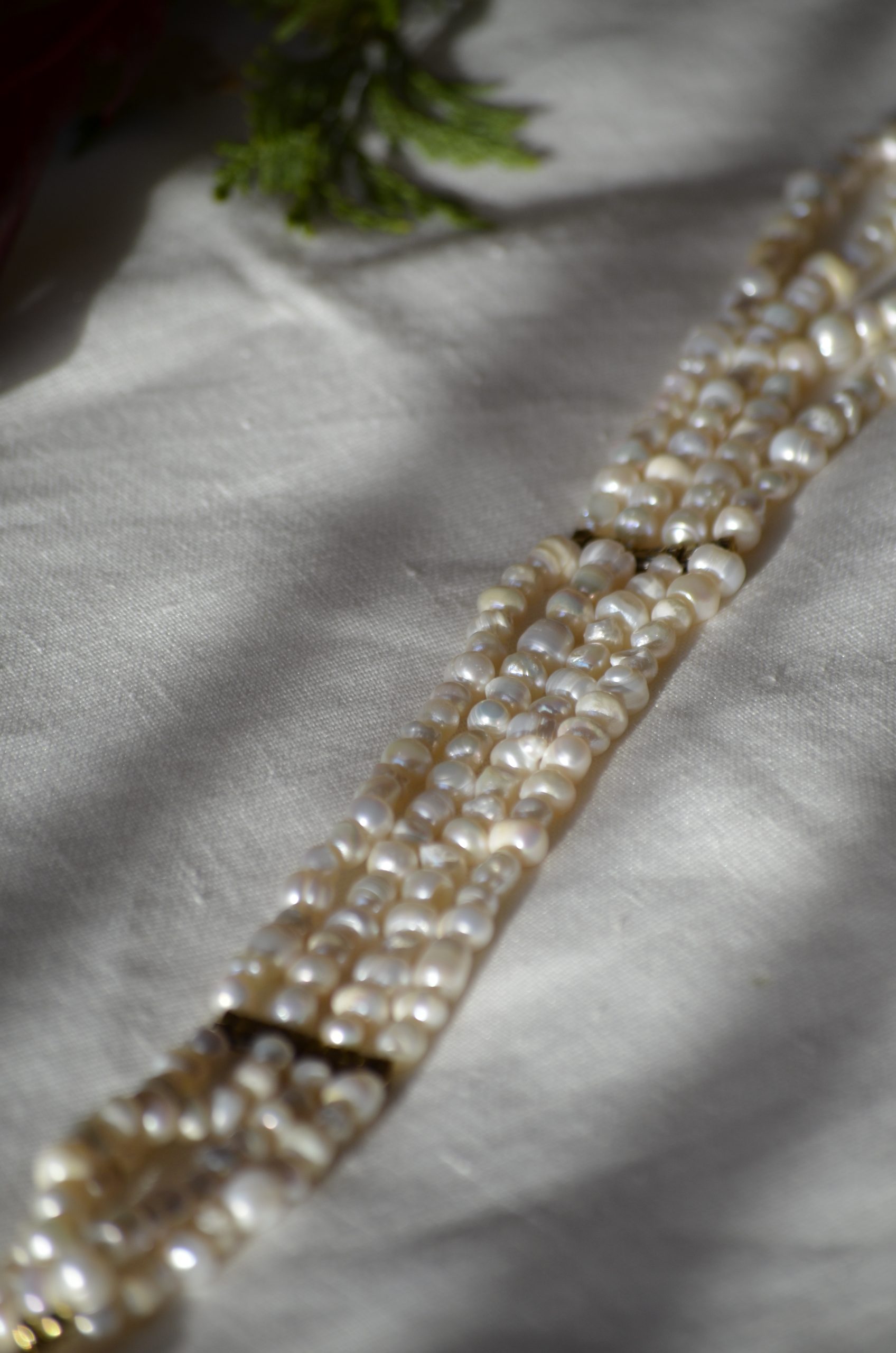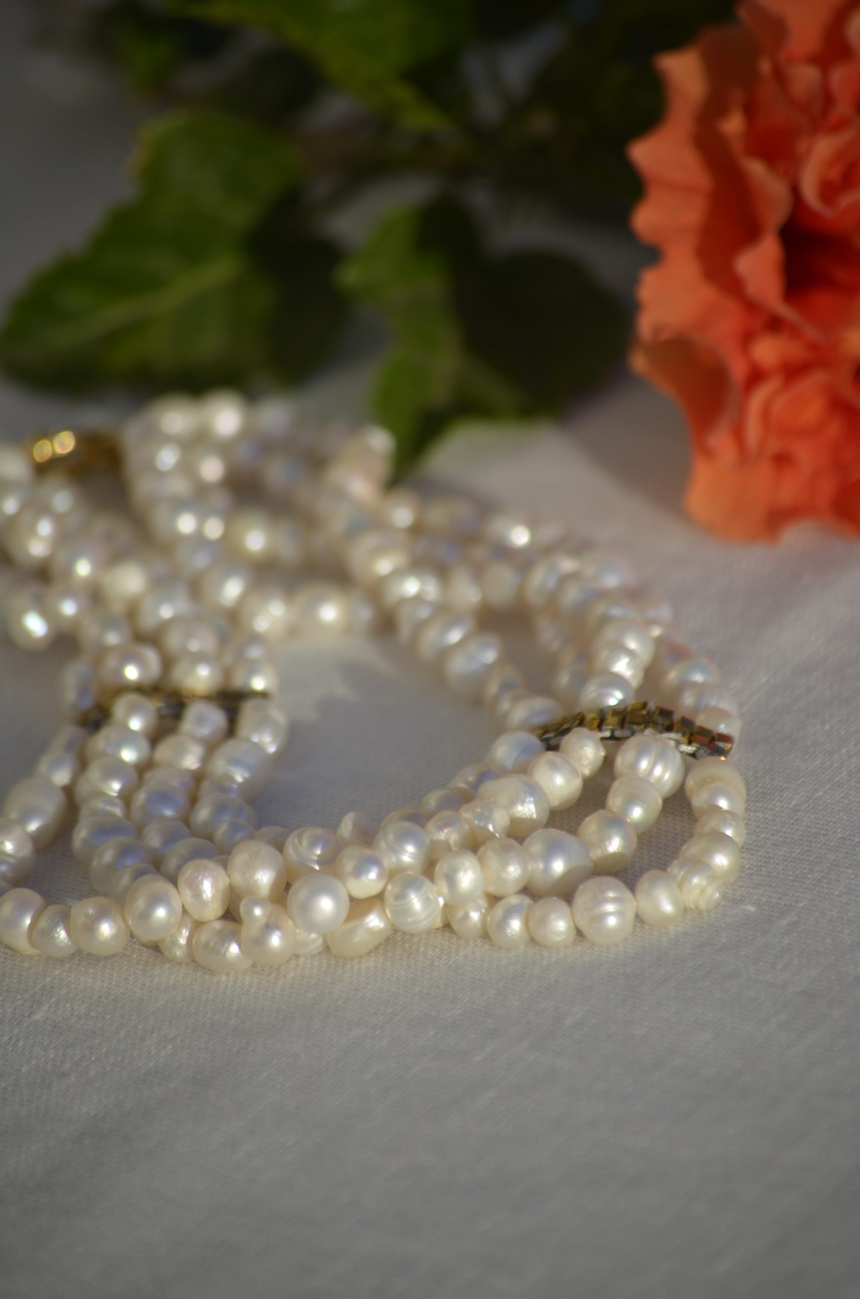 Choker con perlas irregulares de agua dulce. Cadena y piezas doradas de plata de ley bañada en oro de 18K y acero inoxidable.