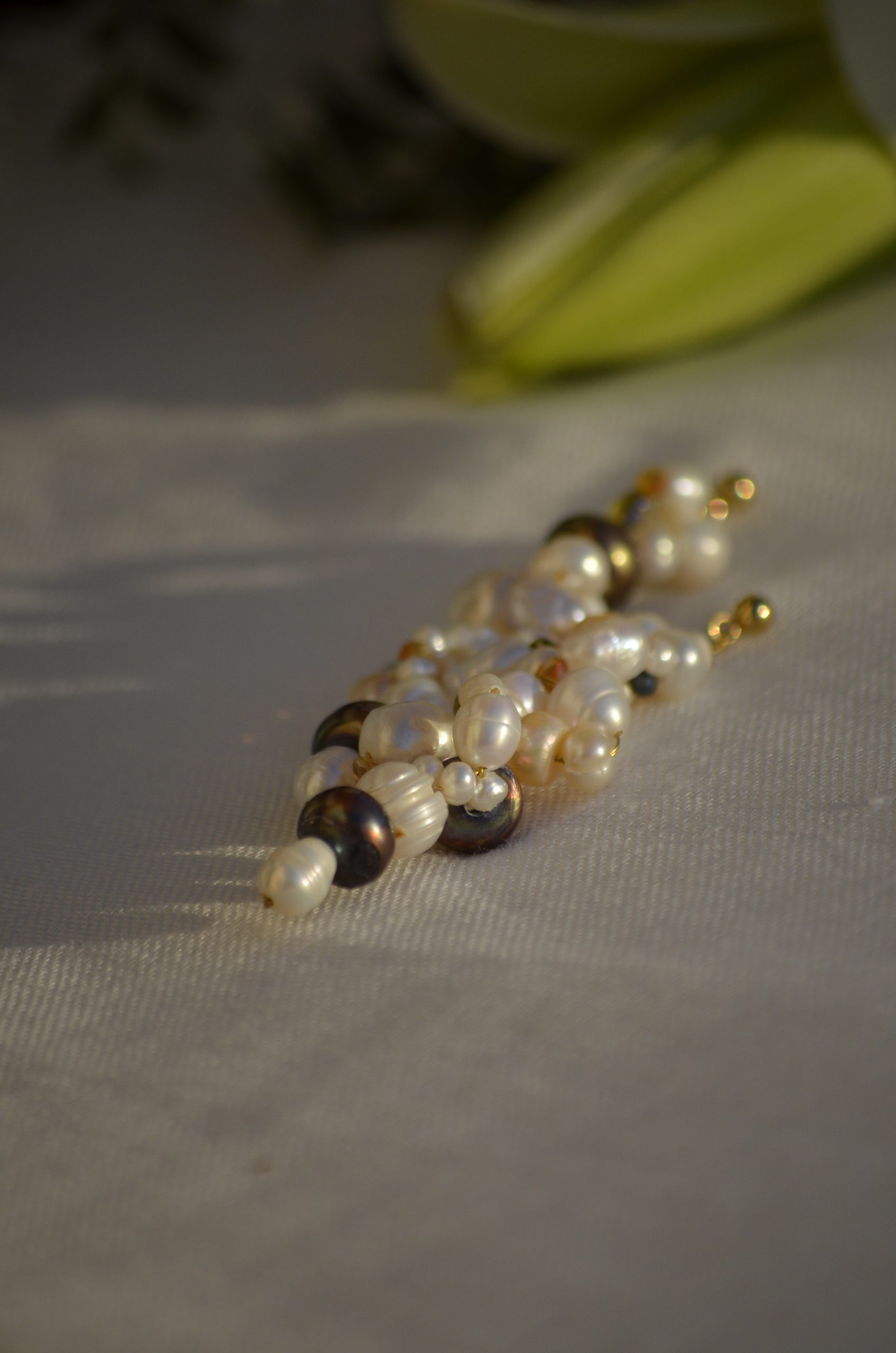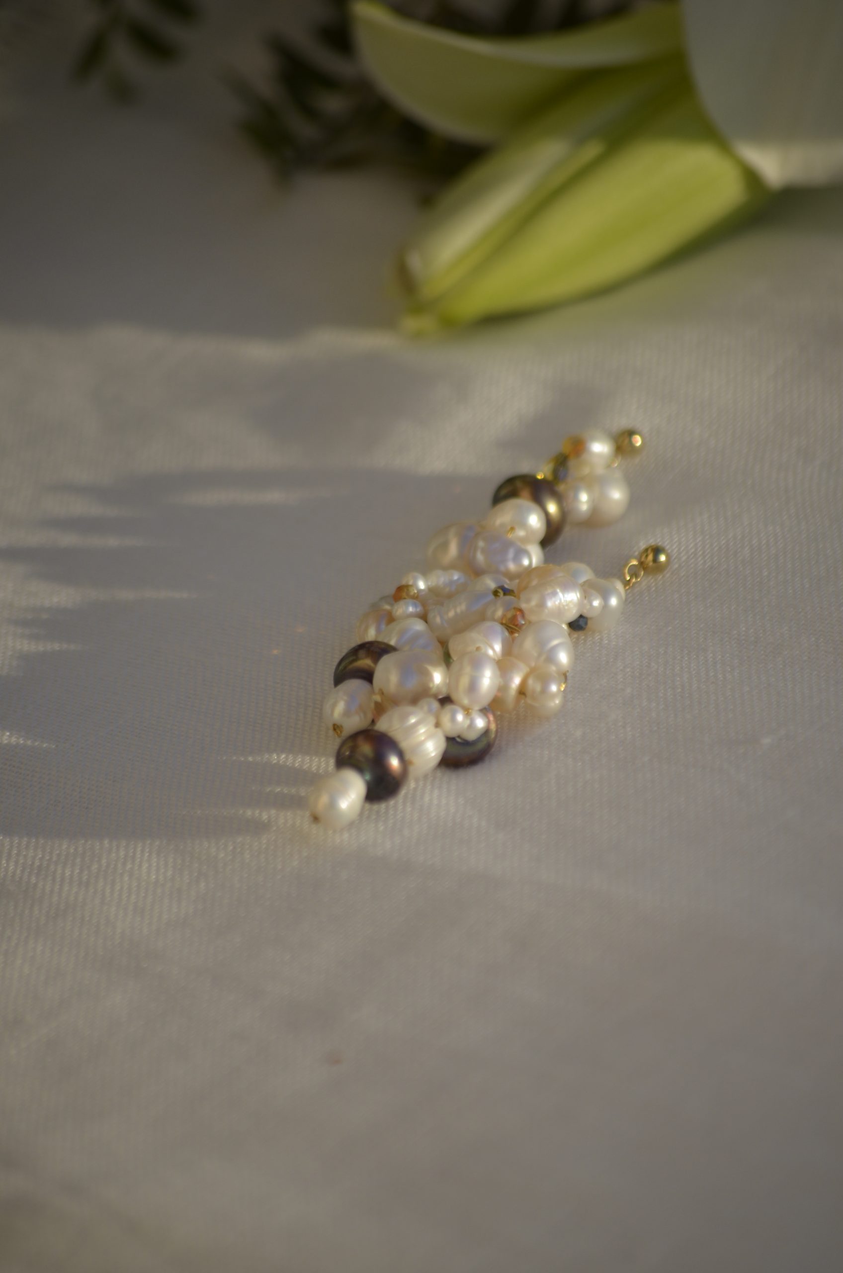 Pendientes con perlas irregulares de agua dulce y cristales de colores