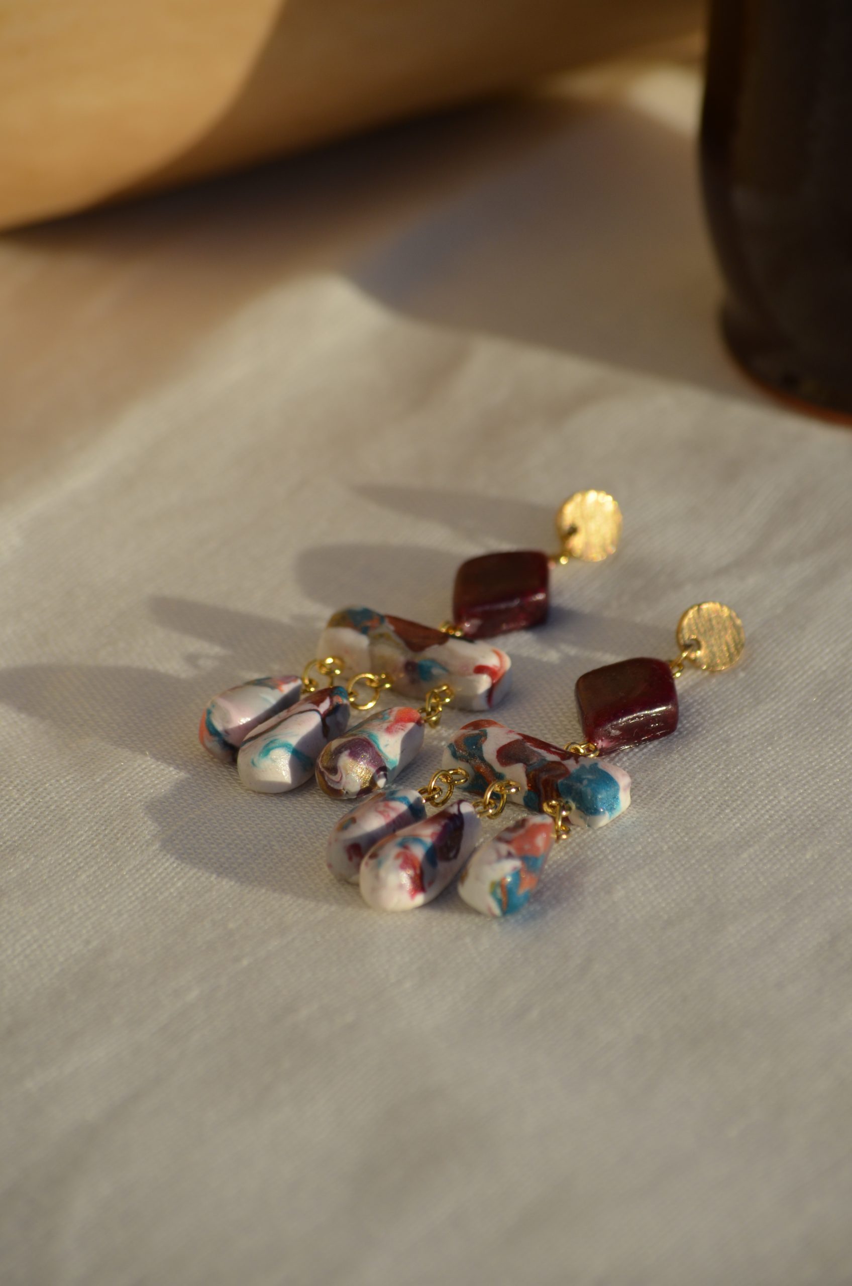 Pendientes modelados a mano en arcilla polimérica.