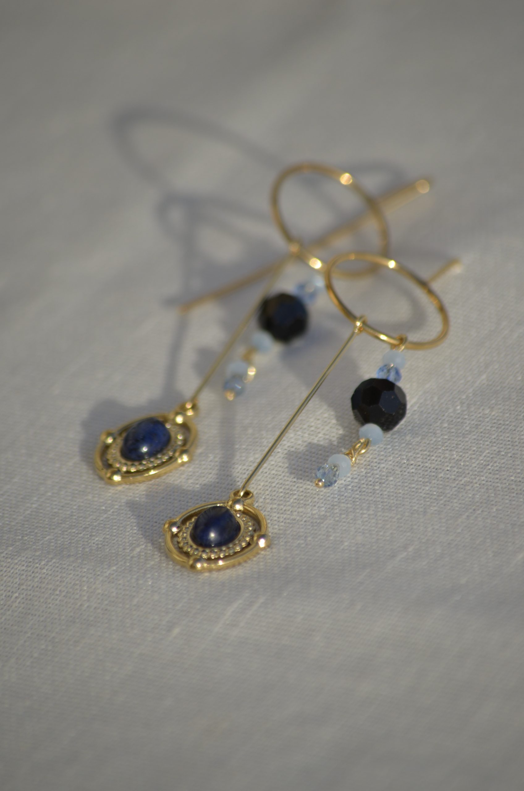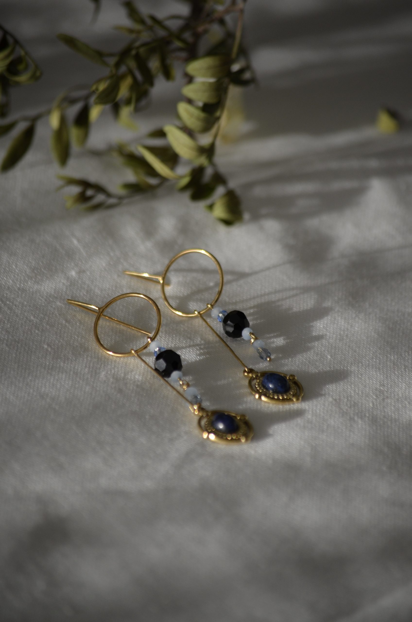 Pendientes con cristales, bola de Swarovski y piedras naturales.