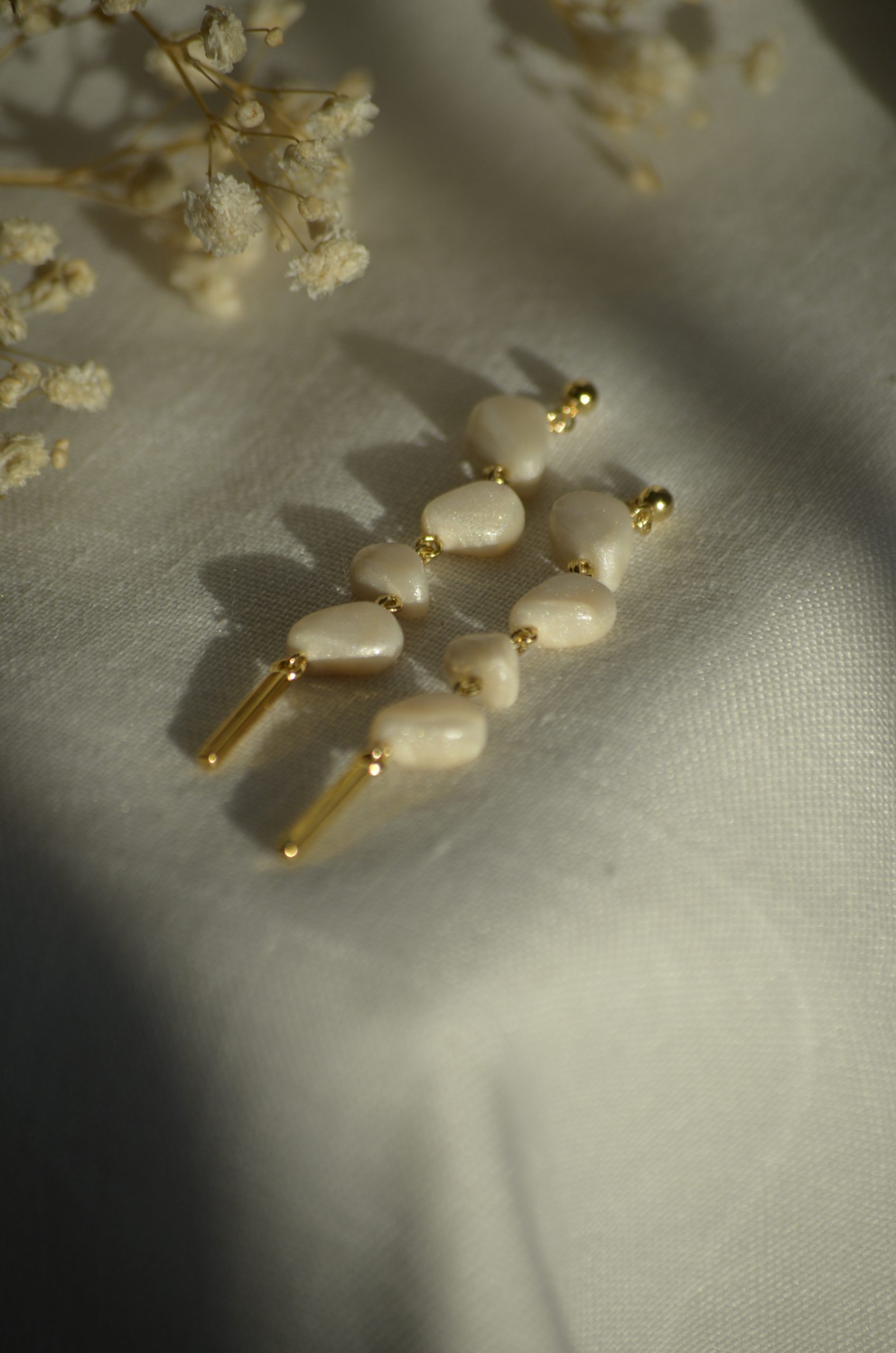 Instrucciones de cuidado: para proteger el baño dorado de tu joya y que permanezca bonita por más tiempo, guárdala siempre dentro de su bolsita, en un lugar limpio y seco alejado de cremas, aceites, perfumes… Evitar en la medida de lo posible el contacto con el agua y tratar con mucho mimo: sobre todo las partes de arcilla polimérica podrían romperse si se caen o se doblan.