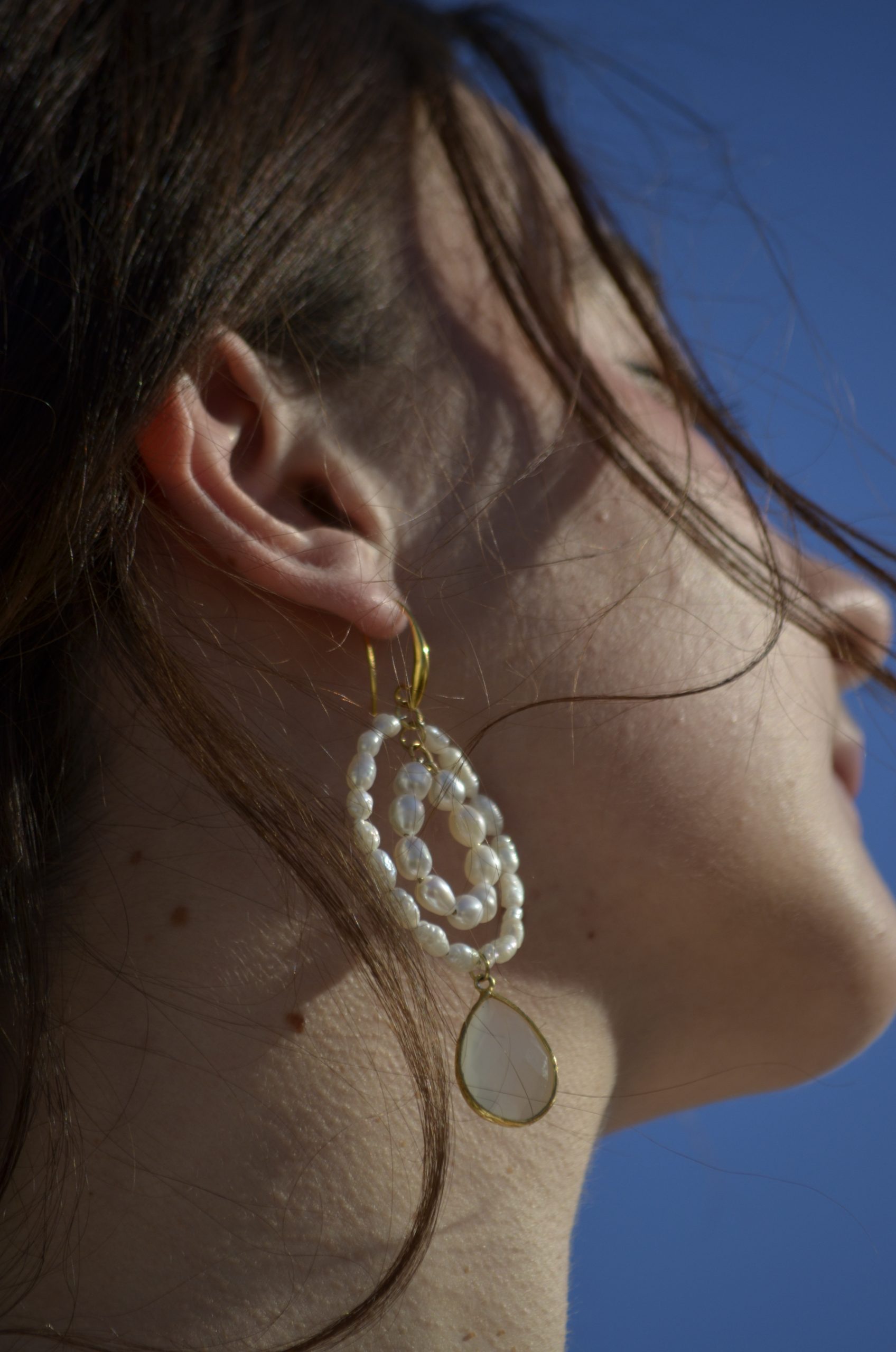 Pendientes con cristales y perlas de agua dulce.