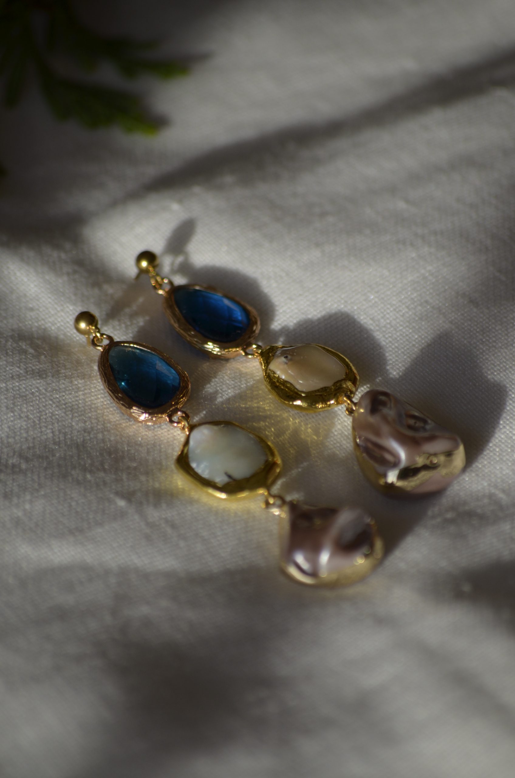 Pendientes con cristales y perlas irregulares de agua dulce.