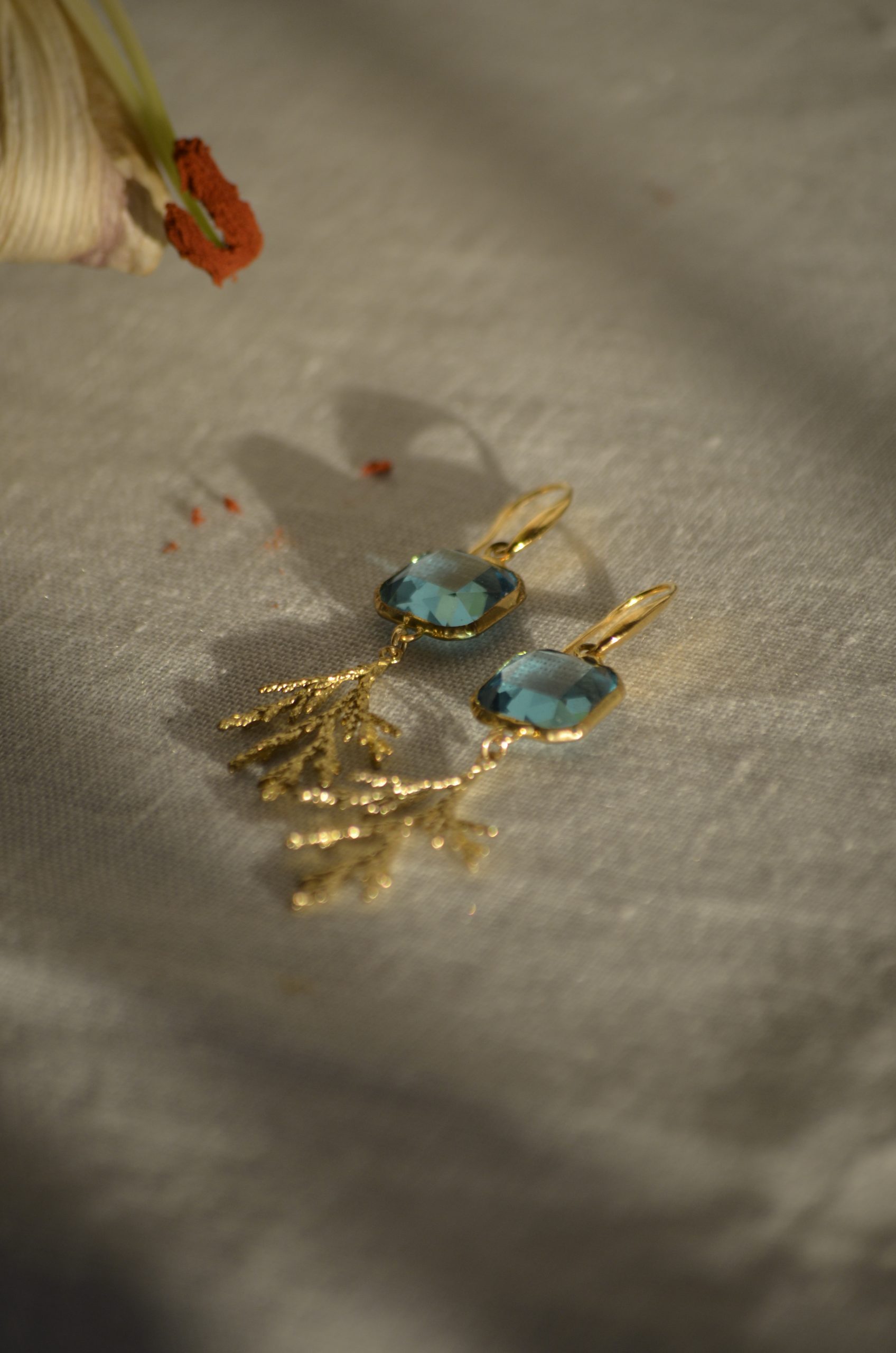 Pendientes de cristales. Todas las bases, enganches y demás piezas metálicas de los pendientes están hechas de latón y zamak. Son hipoalergénicas (sin níquel).