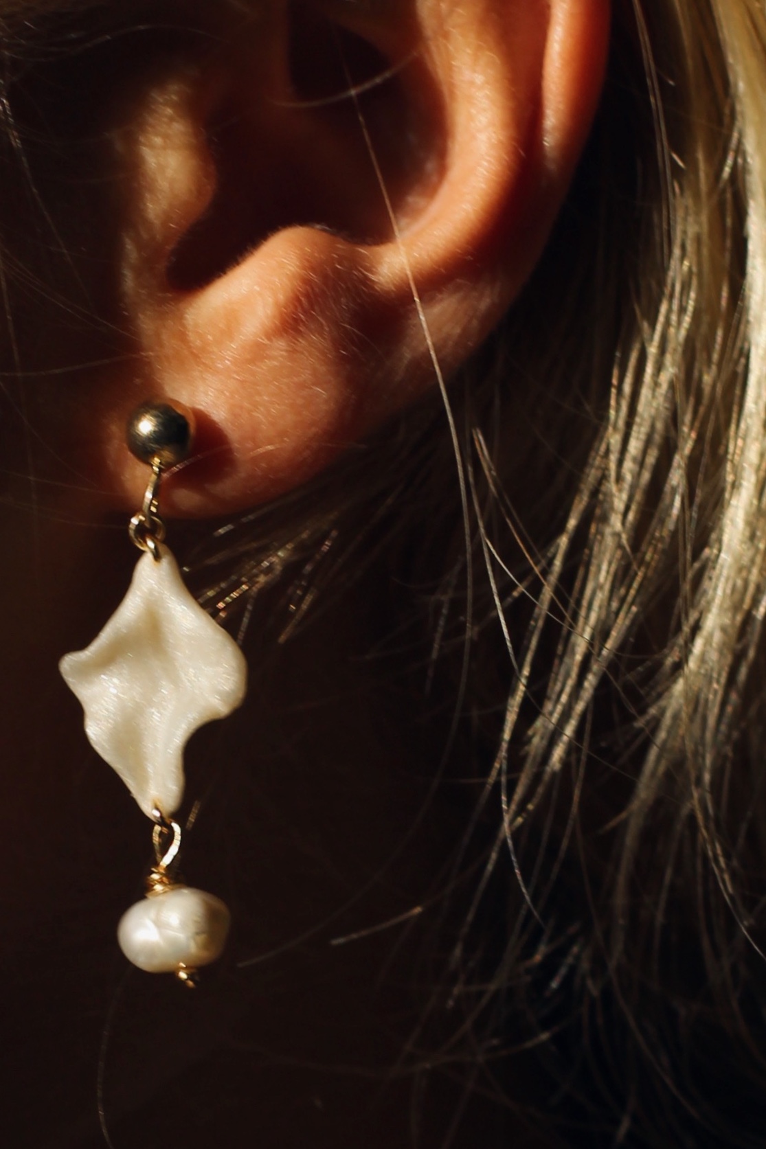 Todas las bases, enganches y demás piezas metálicas de los pendientes son de plata bañada en oro de 18K.